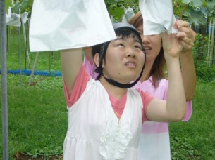 新座市のぶどう園にグループ毎に行きます。お土産用のぶどうを取ったり、その場で試食もします。