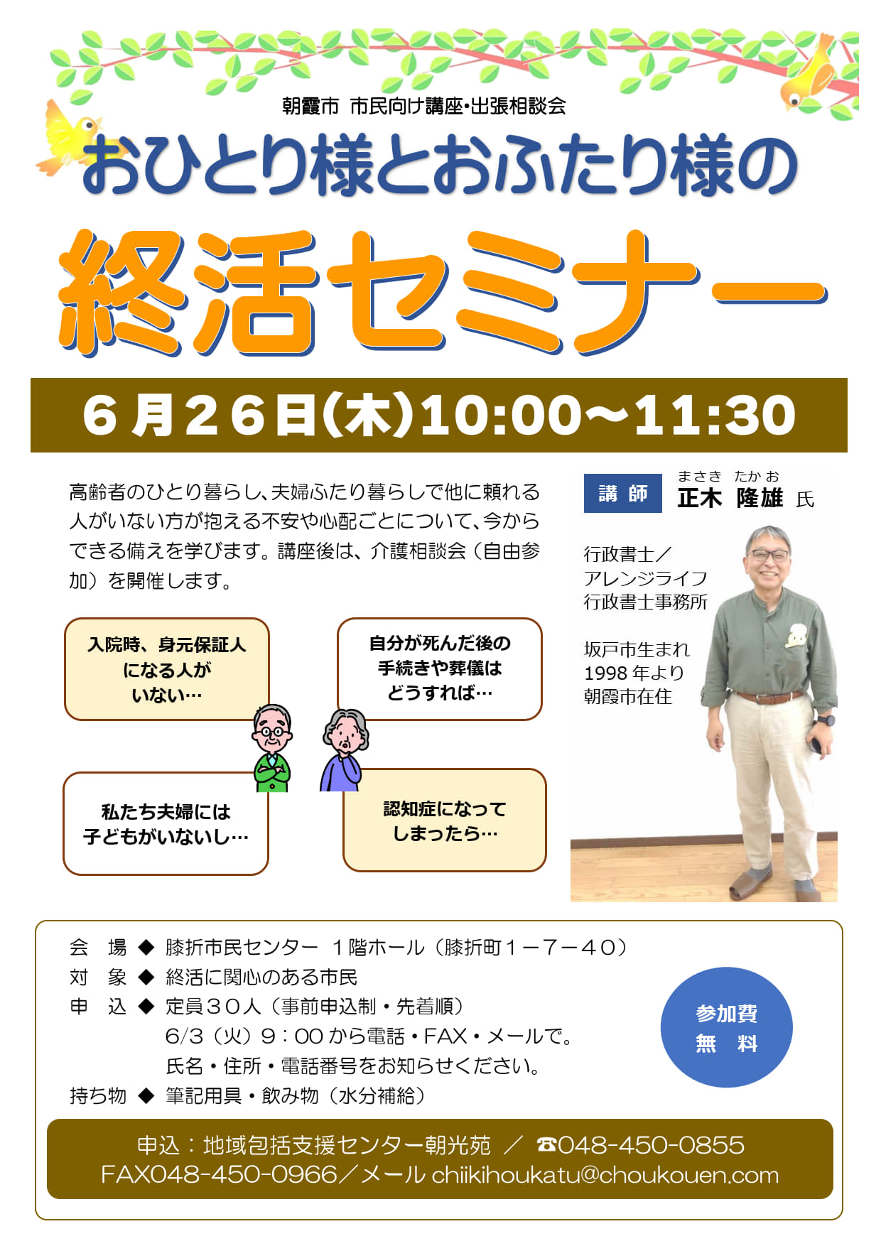 「おひとり様とおふたり様の終活セミナー&出張相談会」を下記の日程で開催いたします。