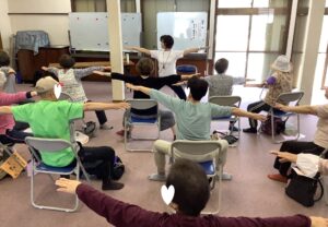 講師にNPO法人日本シニアヨガ協会の代表理事である足立先生をお招きし、椅子に座ってできるヨガを教えていただきました。
