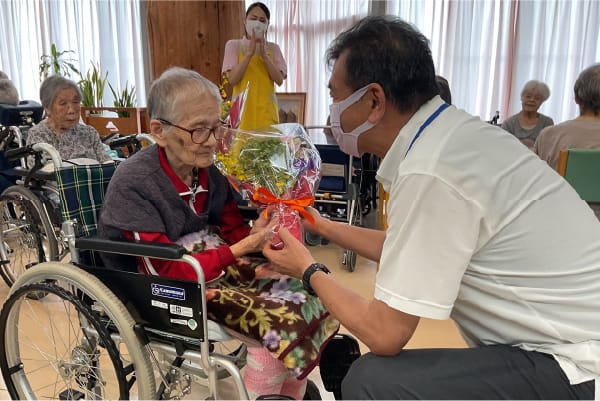 世代間交流を積極的に行い、小さな子供たちとの交流の中で普段見られないような笑顔が見られ、心身の活性化にも効果を得られております。
