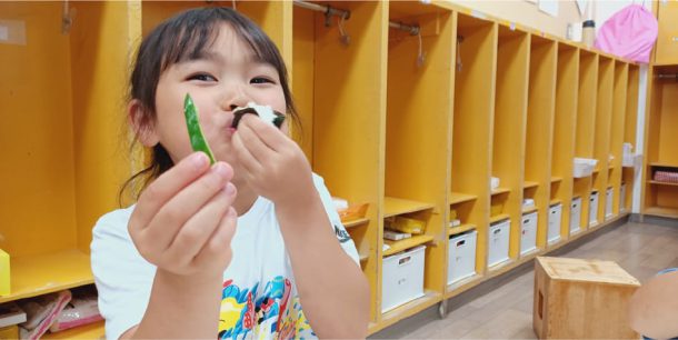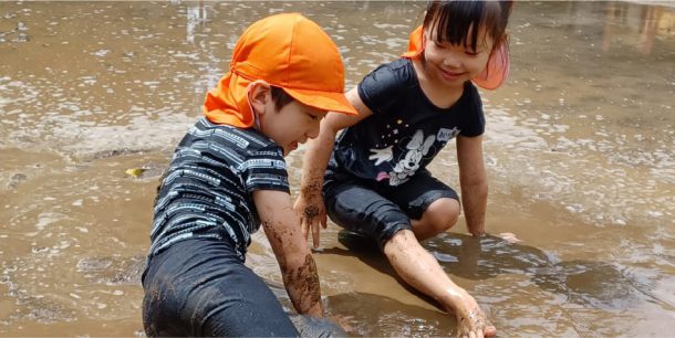 人と人との関わりの中で、愛される喜びを感じ生きる力を育む。健康な身体作りを基本とし、成長に合わせた運動遊び、音楽表現、食育を通して五感を育てます。