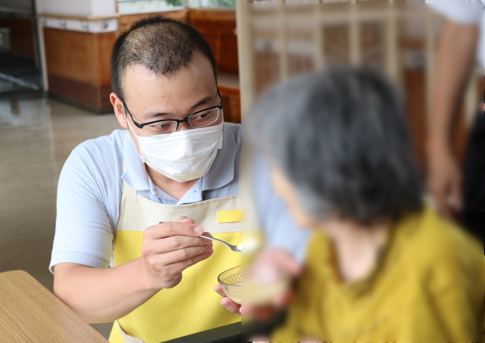 昼食(利用者さんの食事をお手伝い。食べの悪い利用者をチェック)
